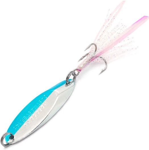 Колеблющаяся блесна CASTMASTER от Kosadaka весом 7 грамм, цвет платина с голубым хромом. Яркая расцветка привлекает внимание рыбы.